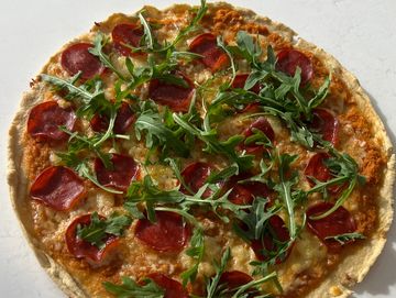 Pan pita integral de la casa, con salsa de tomate, pepperoni