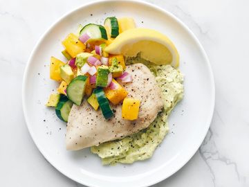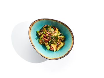salsa de la casa, aguacate, pepino, aderezo macha y poro
